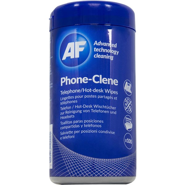 • Resealable tub of 100 telephone and hot-desking wipes for cleaning handsets