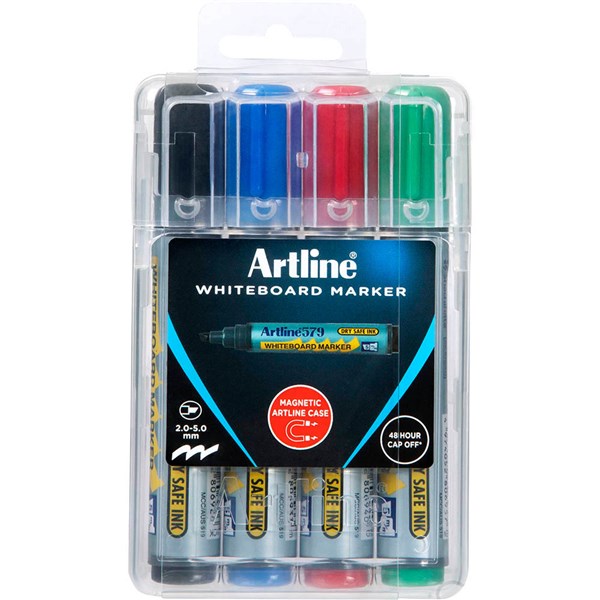 ARTLINE 579 WHITEBOARD MARKER CHISEL 5MM ASSORTED HARD CASE PACK 4