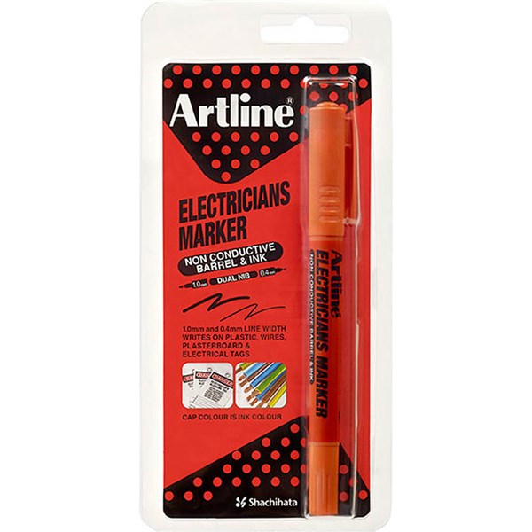 ARTLINE ELECTRICIANS DUAL NIB PERMANENT MARKER BULLET 0.4/1.0MM ORANGE HANGSELL
