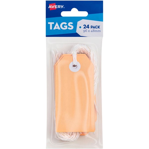 AVERY 13204 SWING TAGS WITH STRING 96 X 48MM PEACH PACK 24