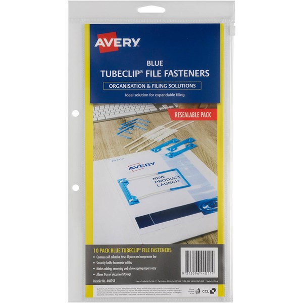 AVERY 44005B TUBECLIP FILE FASTENERS BLUE PACK 10