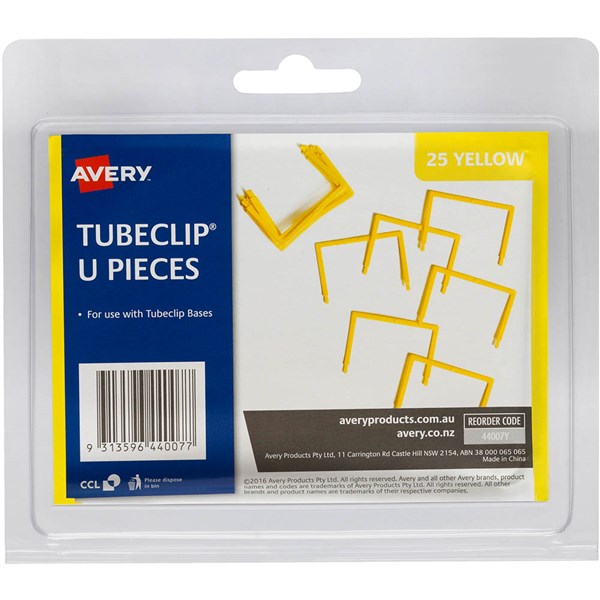 AVERY 44007Y TUBECLIP U PIECE YELLOW PACK 25