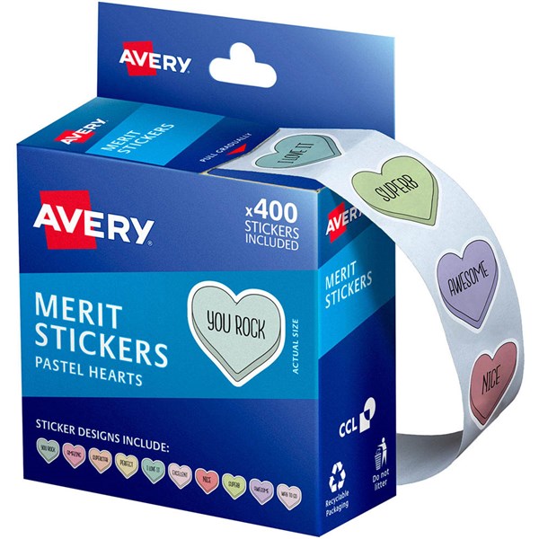 Avery Merit Sticker in a handy dispenser pack is the perfect tool for a reward system at home or in the classroom