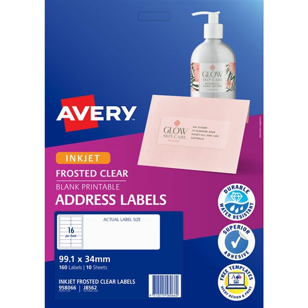 AVERY 958066 J8562 FROSTED CLEAR ADDRESS LABEL INKJET CLEAR 16UP PACK 10