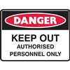 BRADY DANGER SIGN KEEP OUT AUTHORISED PERSONNEL ONLY 450 X 300MM POLYPROPYLENE