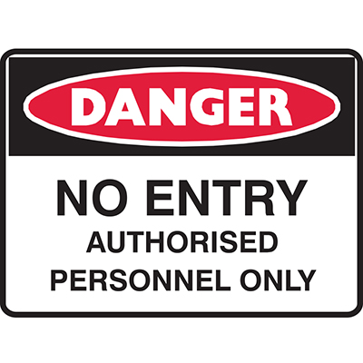 BRADY DANGER SIGN NO ENTRY AUTHORISED PERSONNEL ONLY 450 X 300MM POLYPROPYLENE