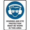 BRADY MANDATORY SIGN HEARING AND EYE PROTECTION MUST BE WORN IN THIS AREA 450 X 300MM POLYPROPYLENE