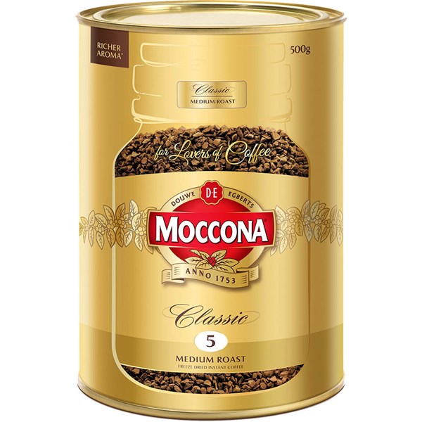 This Moccona Classic Medium Roast Coffee comes in a 500g tin so you can stock up the tea room in the workplace or the pantry at home