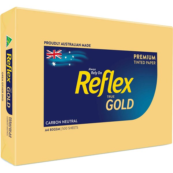 BULK REFLEX COLOURS A4 COPY PAPER 80GSM GOLD PACK 500 SHEETS CTN5 2500 SHEETS