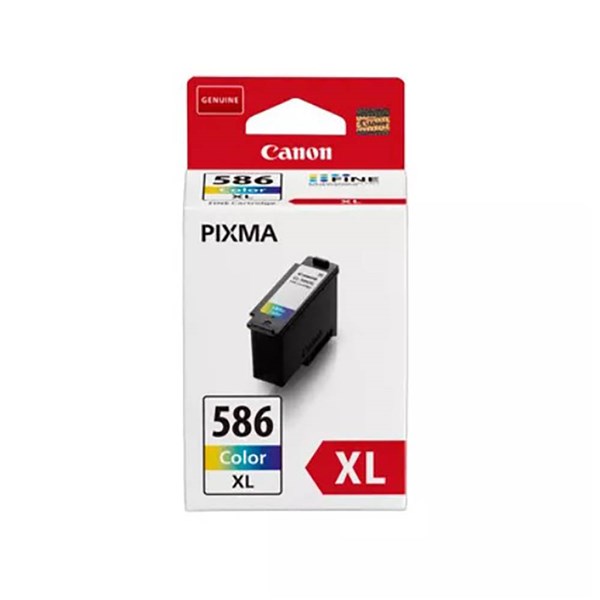 The Canon CL-586XL colour ink cartridges contain cyan, magenta and yellow inks in a single cartridge