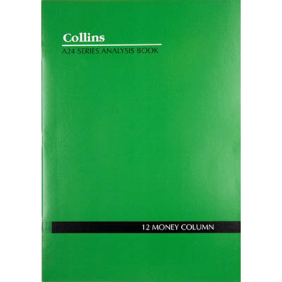 COLLINS A24 SERIES ANALYSIS BOOK 12 MONEY COLUMN FEINT RULED STAPLED 24 LEAF A4 GREEN