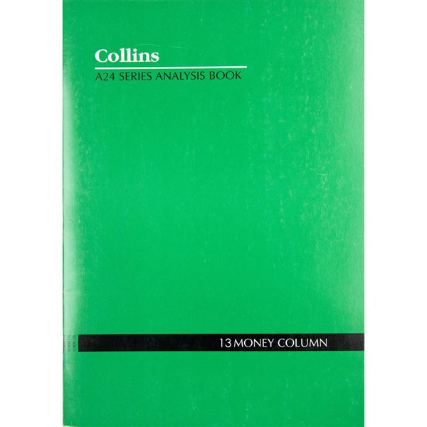 COLLINS A24 SERIES ANALYSIS BOOK 13 MONEY COLUMN FEINT RULED STAPLED 24 LEAF A4 GREEN