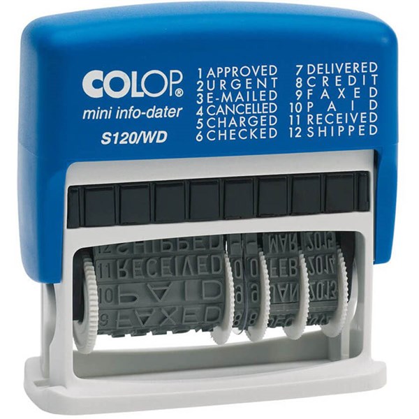 COLOP S120/WD MINI-INFO-DATER PRINTER SELF-INKING STAMP 4MM BLUE/RED