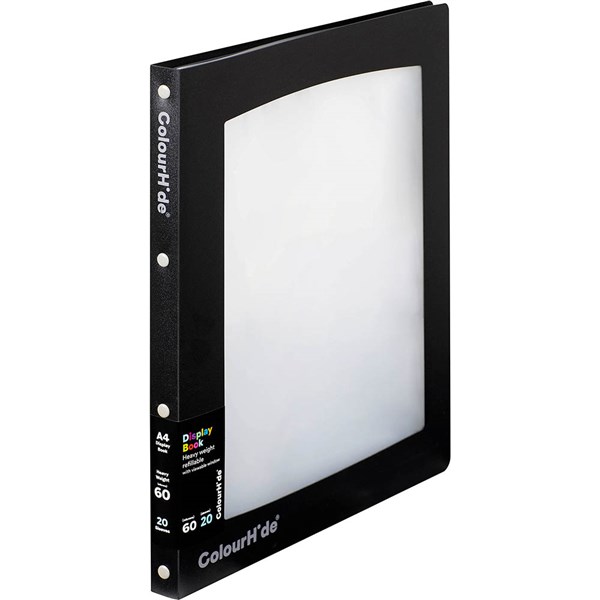 COLOURHIDE DISPLAY BOOK REFILLABLE INSERT 20 POCKET A4 BLACK