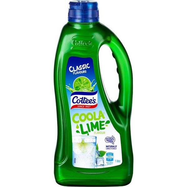 Cottee's Cordial Lime Coola flavour comes in a 1 litre bottle, perfect for adding to water and enjoying at home, in the office or at events and parties
