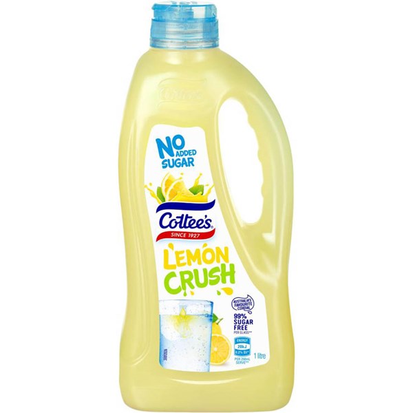 COTTEES CORDIAL NO SUGAR LEMON CRUSH PET 1 LITRE CARTON 9