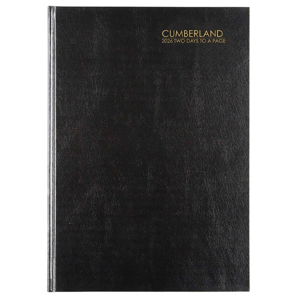 CUMBERLAND 52ECBK CASEBOUND DIARY 2 DAYS TO PAGE A5 BLACK