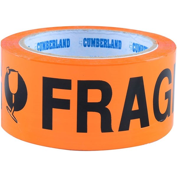 CUMBERLAND PRINTED TAPE FRAGILE 48MM X 66M ORANGE PACK 6