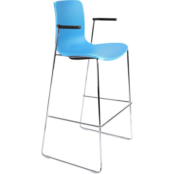 DAL ACTI BAR STOOL SLED BASE HIGH 760MM ARMS BLACK ARM-PADS AND CHROME FRAME OCEAN BLUE POLYPROP SHELL