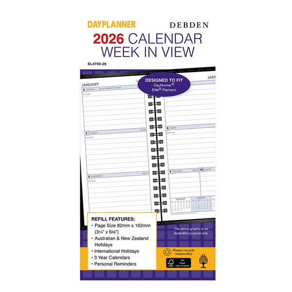 - All Debden DayPlanner refills have universal hole punching to fit most organisers