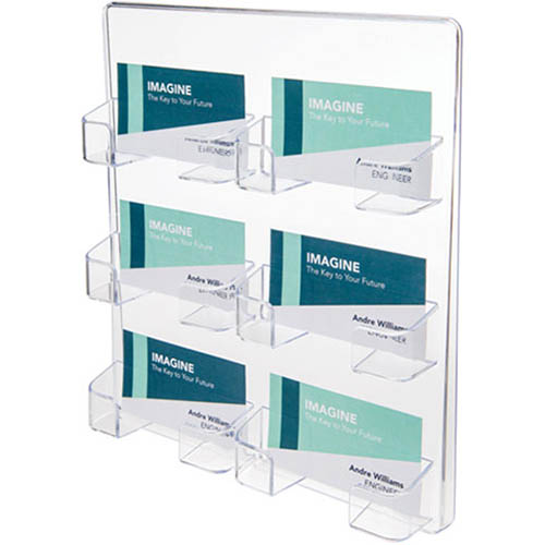 Display your business cards prominently using this 6 pocket, wall mount business card holder