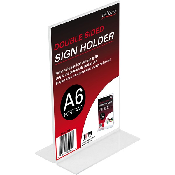 DEFLECTO SIGN HOLDER T-SHAPE DOUBLE SIDED PORTRAIT A6 CLEAR
