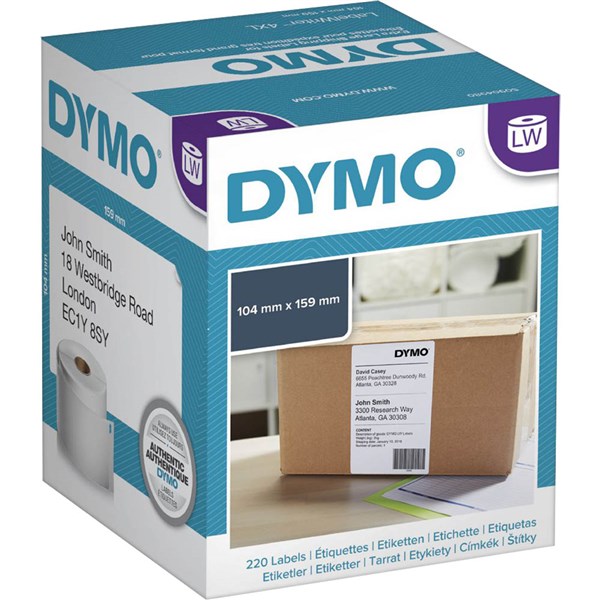 DYMO 0904980 LW 4XL SHIPPING LABELS 104 X 159MM WHITE ROLL 220