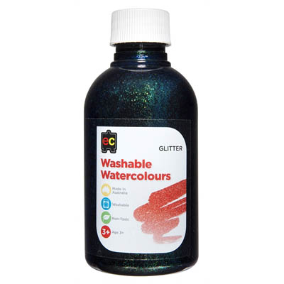 EDUCATIONAL COLOURS WASHABLE WATERCOLOUR GLITTER PAINT 250ML BLACK
