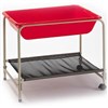 Folding, sturdy steel frame with nylon shelf and two castors for movement around the classroom