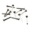- Brass-plated steel, with a round head and spear point