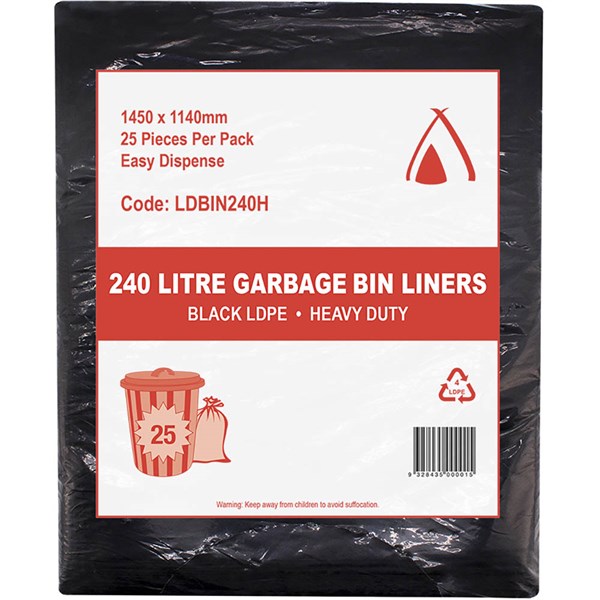 Strong LDPE garbage bin liners suitable for all 54 Litre - 240 Litre garbage bins