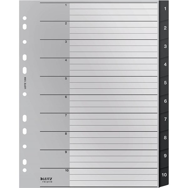 LEITZ RECYCLED INDEX DIVIDER PP 1-10 TAB A4 GREY