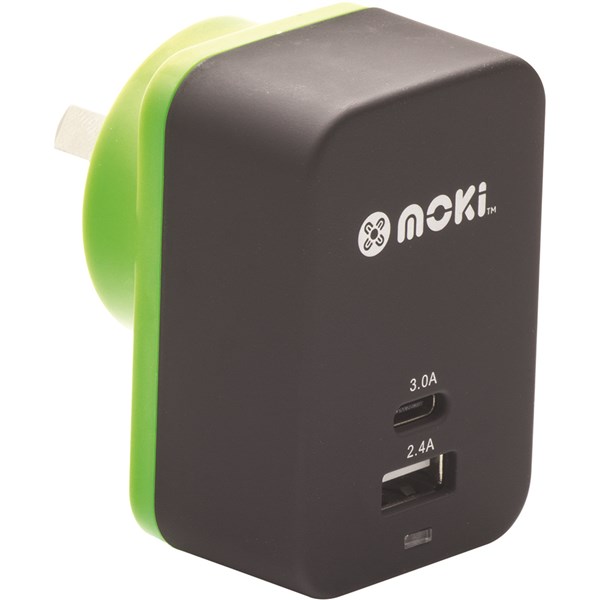 MOKI WALL CHARGER+ USB-A AND USB-C 3.0 BLACK