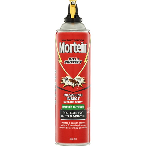 Mortein Kill and Protect Barrier Outdoor Surface Spray Crawling Insect creates a barrier against spiders and crawling insects outside before they get inside