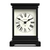 - A classic black mantel clock with a roman numeral dial in a lightweight, precision-engineered acrylic case