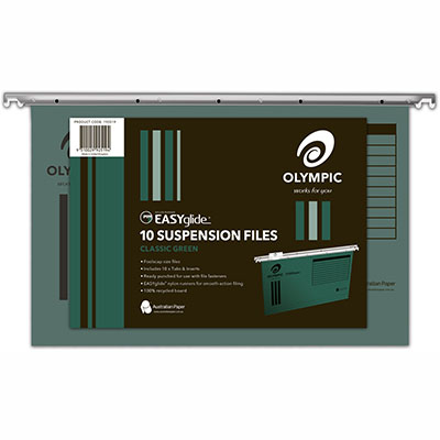 OLYMPIC 100% RECYCLED EASY GLIDE SUSPENSION FILES WITH TABS FOOLSCAP GREEN PACK 10