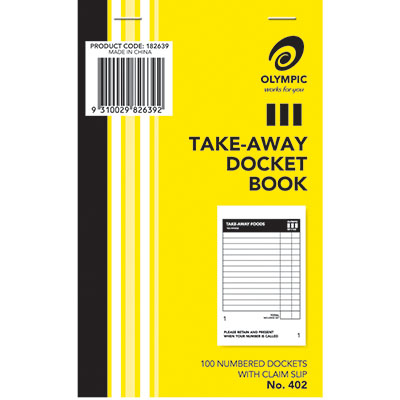 OLYMPIC 402 TAKE-AWAY DOCKET BOOK SINGLE PLY 100 PAGE 93 X 150MM PACK 5