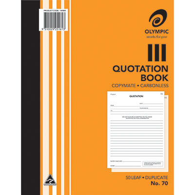 OLYMPIC 70 QUOTATION BOOK CARBONLESS DUPLICATE 50 LEAF 250 X 200MM PACK 10