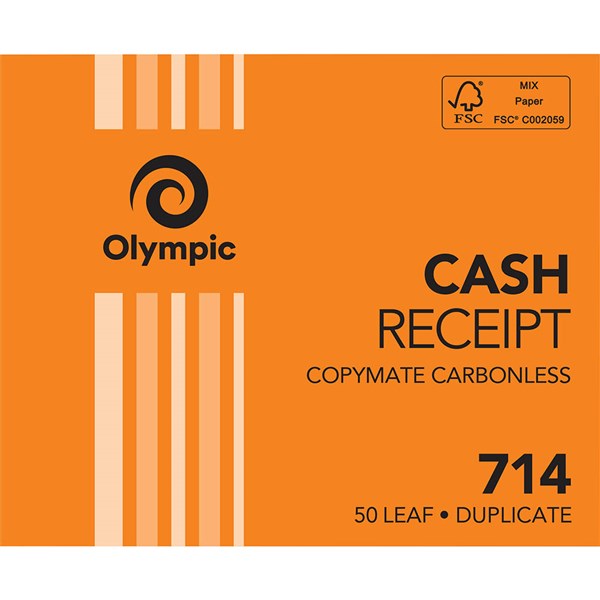OLYMPIC 714 RECEIPT BOOK CARBONLESS DUPLICATE 50 LEAF 125 X 100MM
