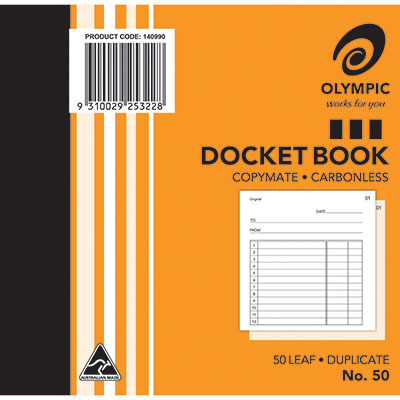 OLYMPIC NO.50 CARBONLESS DOCKET BOOK 50 LEAF 120 X 125MM PACK 20