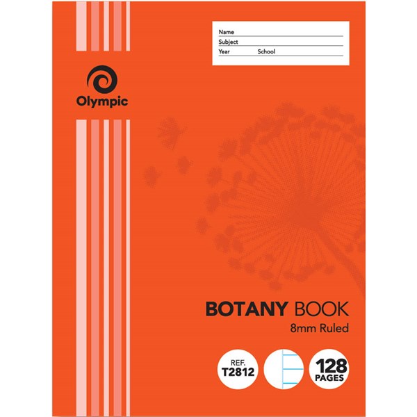 OLYMPIC T2812 BOTANY BOOK 8MM RULED 55GSM 128 PAGE 225 X 175MM