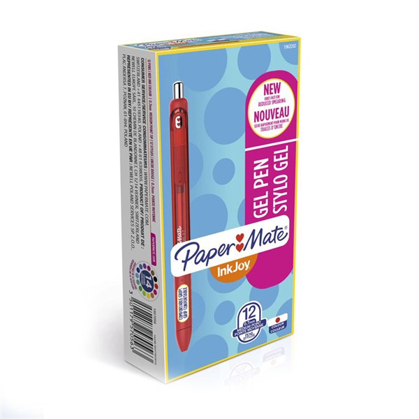 PAPERMATE INKJOY RETRACTABLE GEL PEN MEDIUM 0.7MM RED BOX 12