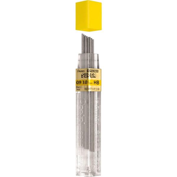 PENTEL HI-POLYMER MECHANICAL PENCIL LEAD REFILLS HB 0.9MM TUBE 15
