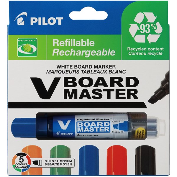 PILOT BEGREEN V BOARD MASTER WHITEBOARD MARKER CHISEL 6.0MM ASSORTED WALLET 5