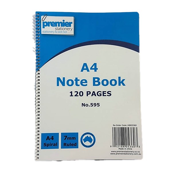 PREMIER SPIRAL NOTEBOOK 120 PAGES 80GSM A4 BLUE