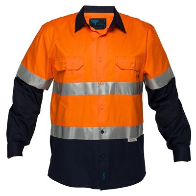 PRIME MOVER MA801 COTTON DRILL SHIRT LONG SLEEVE LIGHTWEIGHT WITH TAPE 2-TONE ORANGE NAVY SMALL