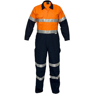PRIME MOVER MA931 REGULAR WEIGHT COVERALL WITH METAL STUD CLOSURE AND TAPE 2-TONE ORANGE NAVY 107R