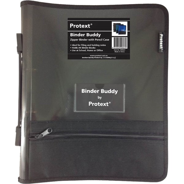 PROTEXT BINDER BUDDY WITH ZIPPER 2 RING WITH HANDLE PLUS PENCIL CASE PLUS POCKETS 25MM SMOKE
