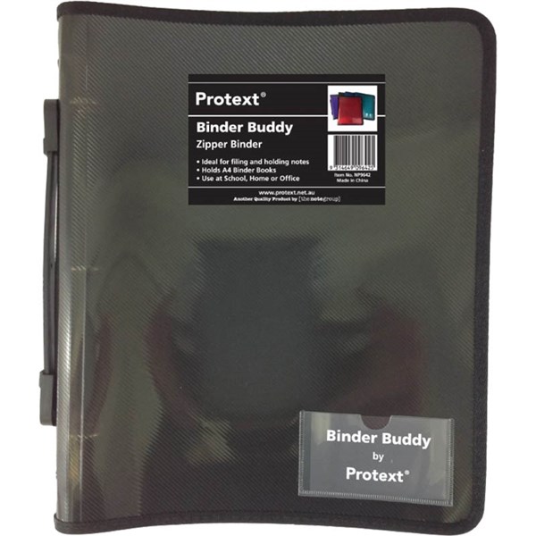 PROTEXT BINDER BUDDY WITH ZIPPER 3 RING WITH HANDLE 25MM SMOKE