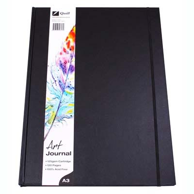 QUILL ART JOURNAL HARDCOVER 125GSM 120 PAGE A3 BLACK